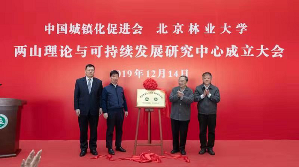 12月14日,由中国城镇化促进会与北京林业大学联合创建的“两山理论与可持续发展研究中心”成立大会在北京林业大学举行。全国人大常委会原副委员长、中国城镇化促进会主席蒋正华,中国城镇化促进会党委书记、副主席兼理事长陈炎兵,北京林业大学党委书记王洪元、校长安黎哲共同为中心揭牌。
