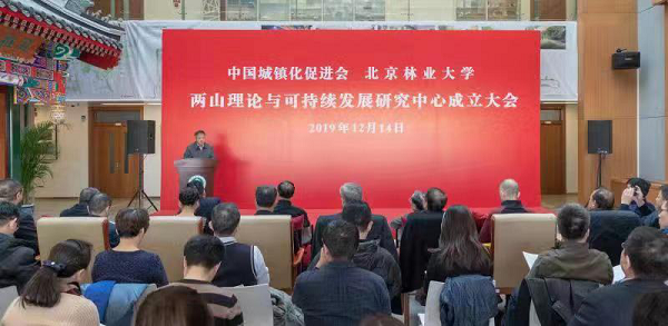 王洪元书记首先致辞,并介绍了“两山理论与可持续发展研究中心”的成立背景、重要意义及其主要目标和任务。王洪元表示,共建中心是北京林业大学开展“不忘初心、牢记使命”主题教育的一项重大成果,也是推进“双一流”建设、提升服务国家战略能力水平的重要举措。北京林业大学将与中国城镇化促进会通力合作,以中心为依托,研究好、阐释好、贯彻落实好习近平生态文明思想,服务我国新型城镇化建设,把中心建成为城乡治理的“新智库”、协同创新的“新样板”、双方合作的“新平台”。