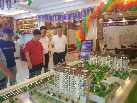 调研组首先考察调研了赣州市全南县的智慧农贸市场项目,中国健康产业投资基金管理股份有限公司总裁、中健农开实业集团董事长谢俊和中健农开实业集团总经理刘声宇向调研组介绍了“全南五星生活广场综合农贸市场项目”的运作模式和开发、建设情况。调研组对中健农开实业集团将首都与地方、城市与乡村、北京品牌与地方资源相结合,致力于农贸市场的提升与改造这一城市民生公共设施建设和城乡融合发展的切入点,创新思路、精准发力、高效实施,用“锦绣大地”品牌在赣南大地谱写出了“锦绣”文章,值得推广和借鉴。