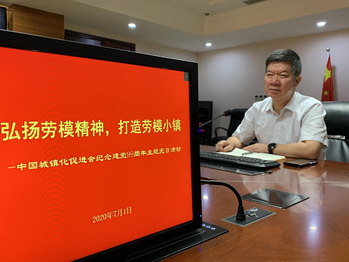 2020年7月1日,中国城镇化促进会与山西省长治市平顺县西沟乡远程视频连线,以“弘扬劳模精神,打造劳模小镇”为主题,举行了纪念建党99周年主题党日活动。本次活动由城促会党委书记、副主席兼理事长陈炎兵主持,党委成员及全体党员参加活动。