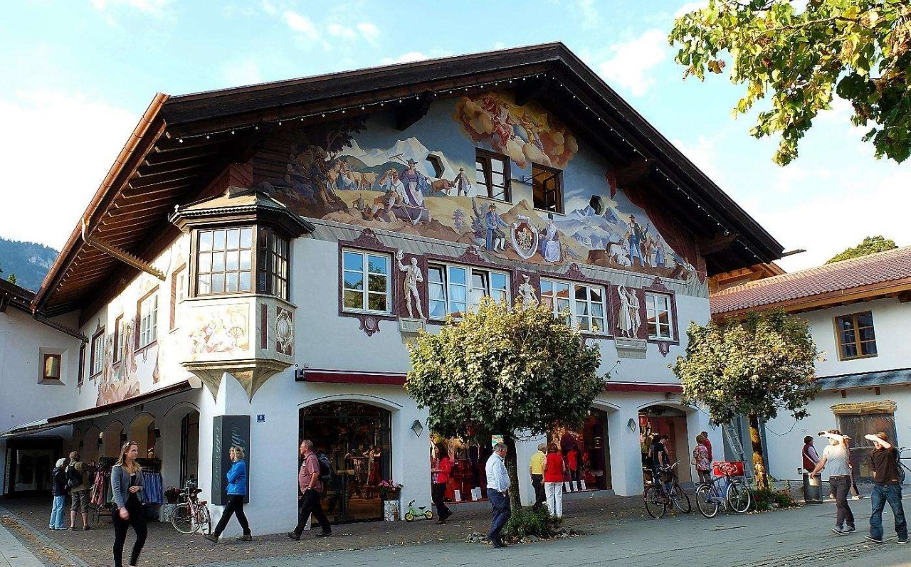 Partenkirchen是老城,许多房屋的外墙上都画着精美的壁画,走在这老城的街道上仿佛回到了童话的世界。