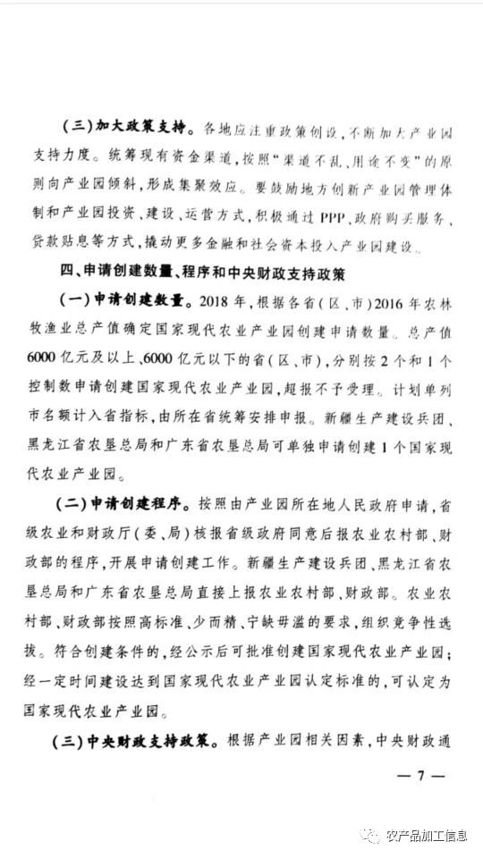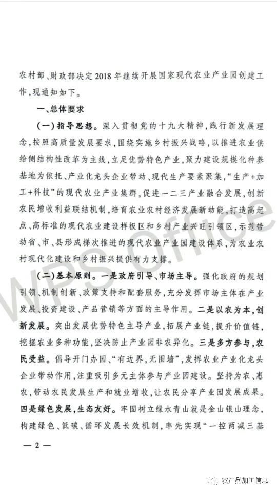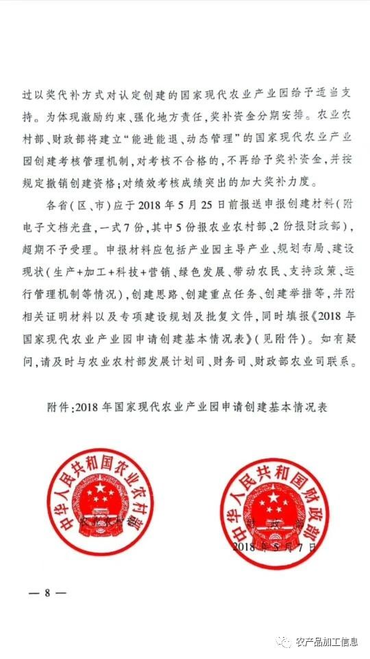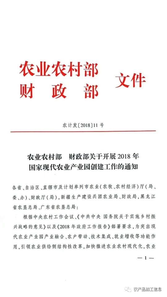 农业农村部 财政部关于开展2018年国家现代农业产业园创建工作的通知
