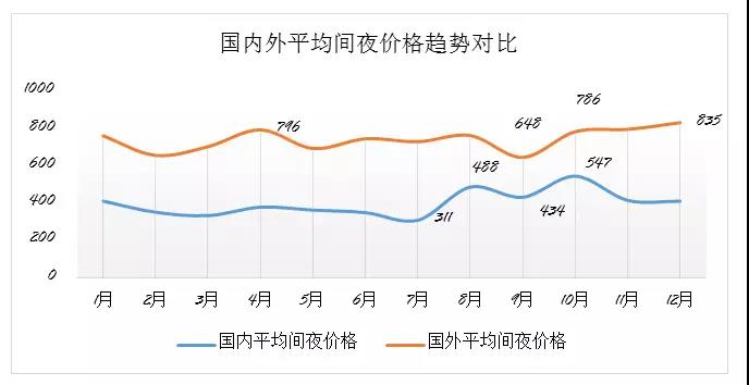 2017年10月、8月、9月均价最高,7月均价最低,高峰期比淡季上涨幅度高达76%;海外民宿平均价格为744元/晚(高出国内平均价格85%),其中12月、10月和4月均价最高,分别为835元和786元,9月份则是海外民宿价格最低点,平均为648元,9月份是国内出行的相对高峰期,此时不妨选择海外出行。相对国内淡旺季的波动,国外民宿价格波动相对稳定,高峰期均价仅高出淡季均价29%。