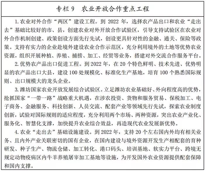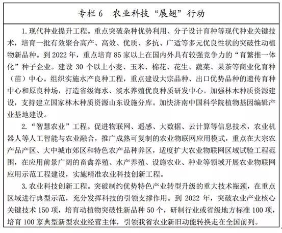 (二)优化农业产业结构。加快农业结构战略性调整,推进农林牧渔循环发展。优化种植业结构,大力发展名优特新经济作物,稳步扩大“粮改饲”面积,形成粮经饲协调发展的三元种植结构。巩固蔬菜产业优势,大力发展设施蔬菜和智慧农业大棚。加快高油和优质食用花生品种选育,建设一批花生标准化生产基地。积极发展林业经济,做大设施花卉、设施果树产业,鼓励适宜地区种植油用牡丹、毛梾、榛子、核桃等木本粮油树种,推广林菌、林药、林草、林茶、林菜、林禽、林畜等林下经济发展模式。发展生态高效循环畜牧业,加快肉牛肉羊等草食畜牧业发展,促进奶业健康发展,构建粮草兼顾、农牧结合、生态循环的新型种养模式,到2022年,畜禽规模化养殖比重达到80%以上。