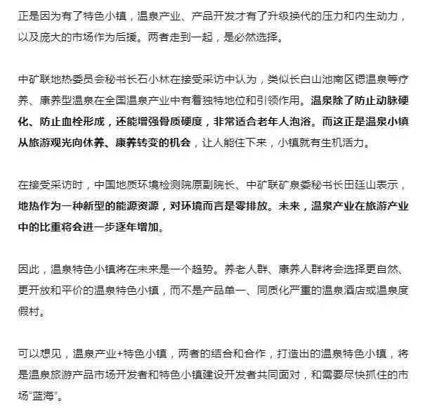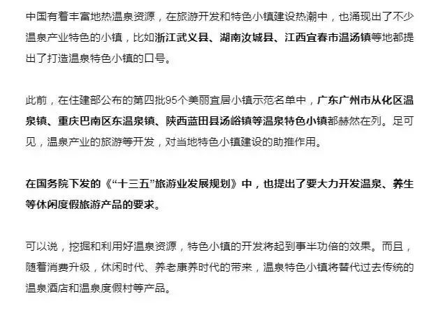 三、温泉产业和特色小镇共同的“红利”