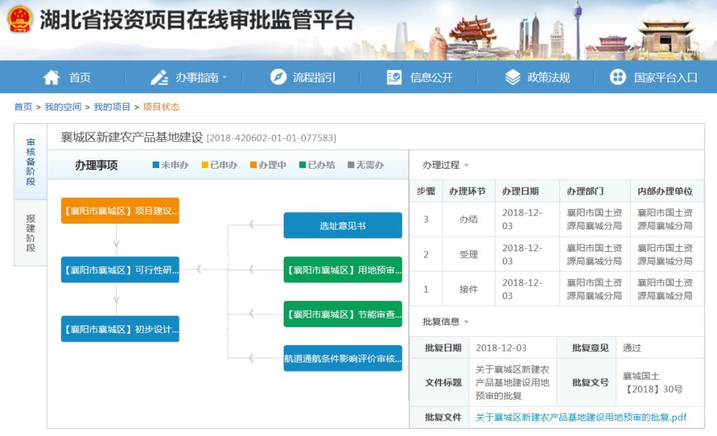 2014年,湖北省在全国率先建成投资项目在线审批监管平台,实现省直13个部门在线联合审批。2015年底二期平台上线,实现中央、省、市、县四级贯通。2017年4月,按照审批标准化、报建简便化、服务便民化、监管常态化的原则,修订完善后的三期平台上线运行,变“群众跑路”为“信息跑路”,变“企业四处找”为“部门协同办”。
