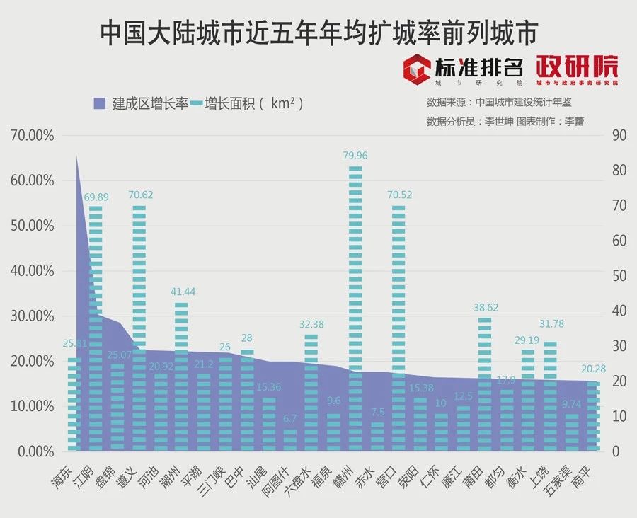 这五年来,中国各城市建成区面积与城区人口差额不断扩大,城市扩建速度已经远远超过城区人口增长速度。